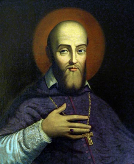 Bishop of Geneva, Doctor of the Universal Church. born at Thorens, in the Duchy of Savoy, 21 August, 1567; died at Lyons, 28 December, 1622. His father, François de Sales de Boisy, and his mother, Françoise de Sionnaz, belonged to old Savoyard aristocratic families. The future saint was the eldest of six brothers. His father intended him for the magistracy and sent him at an early age to the colleges of La Roche and Annecy. From 1583 till 1588 he studied rhetoric and humanities at the college of Clermont, Paris, under the care of the Jesuits. While there he began a course of theology. After a terrible and prolonged temptation to despair, caused by the discussions of the theologians of the day on the question of predestination, from which he was suddenly freed as he knelt before a miraculous image of Our Lady at St. Etienne-des-Grès, he made a vow of chastity and consecrated himself to the Blessed Virgin Mary.